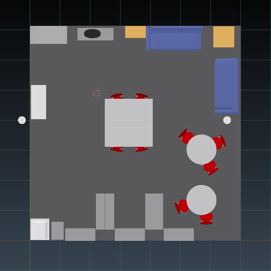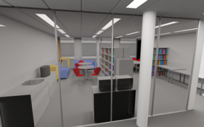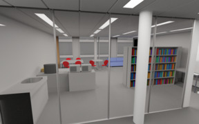 We were not satisfied with the arrangement of furniture in our laboratory kitchen, but what new layout should we use? To try out some variants without moving the heavy cases, I made a model of the room in Blender . This way we could move the virtual furniture and render the results.